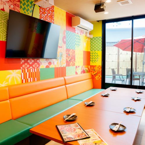 【최대 30 명까지 수용 가능한 연회 공간도】 플랫 룸에서는 신발을 벗고 느긋하게 휴식하면서 코스 메뉴, 노래방과 영상을 즐기면서 식사하실 수 있습니다! 쿠션 공간 · 어린이 동반도 안심 ♪